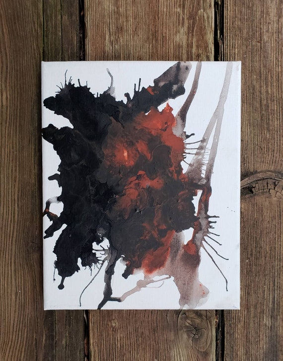 Original 8 x 10 peinture acrylique abstraite sur toile noir et | Etsy